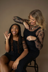 This Mother Daughter Leaving Your Legacy Session with the amazing Geni Bean from Pink Owl Photography had us laughing during the shoot (let’s just say the BTS did not have us looking nearly as fabulous 🙂 and in tears when I saw our gallery.